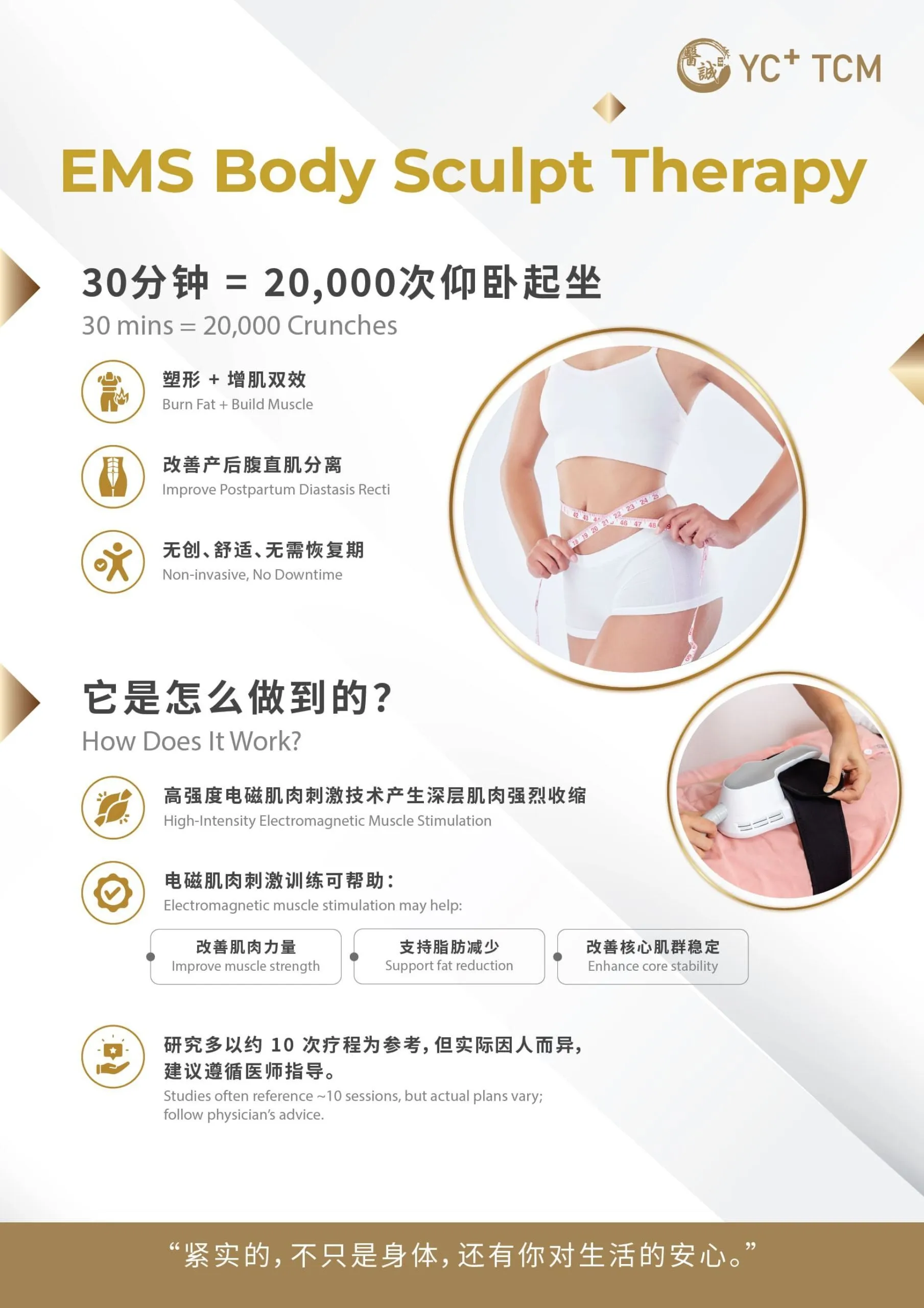 - Use EMS Body Sculpt Therapy to rebuild core strength, restore body shape, and help new mothers regain vitality and confidence.