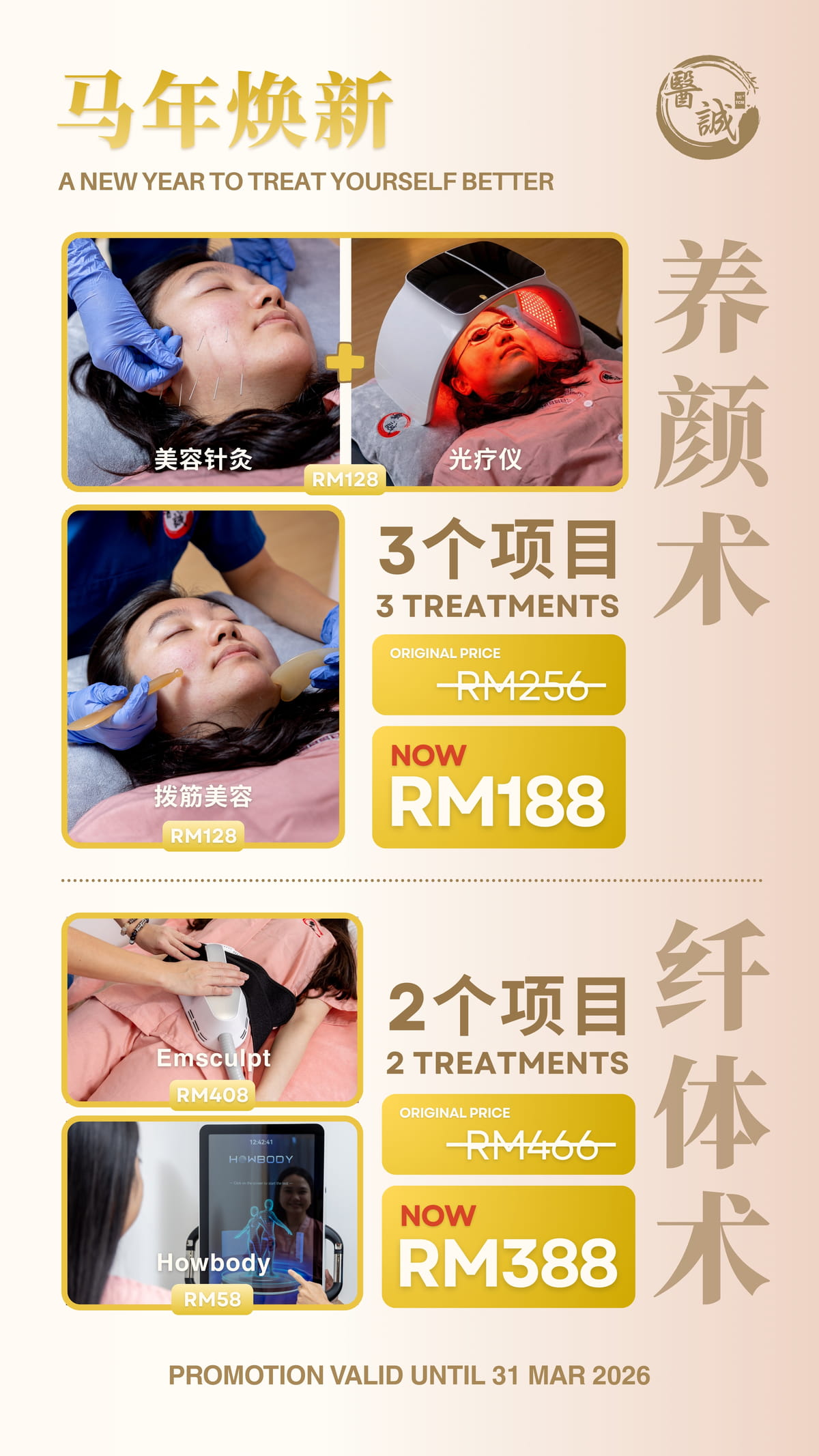 - 结合美容针灸与LED光疗仪等先进设备,改善肤质、紧致肌肤,让肌底焕发光采。
